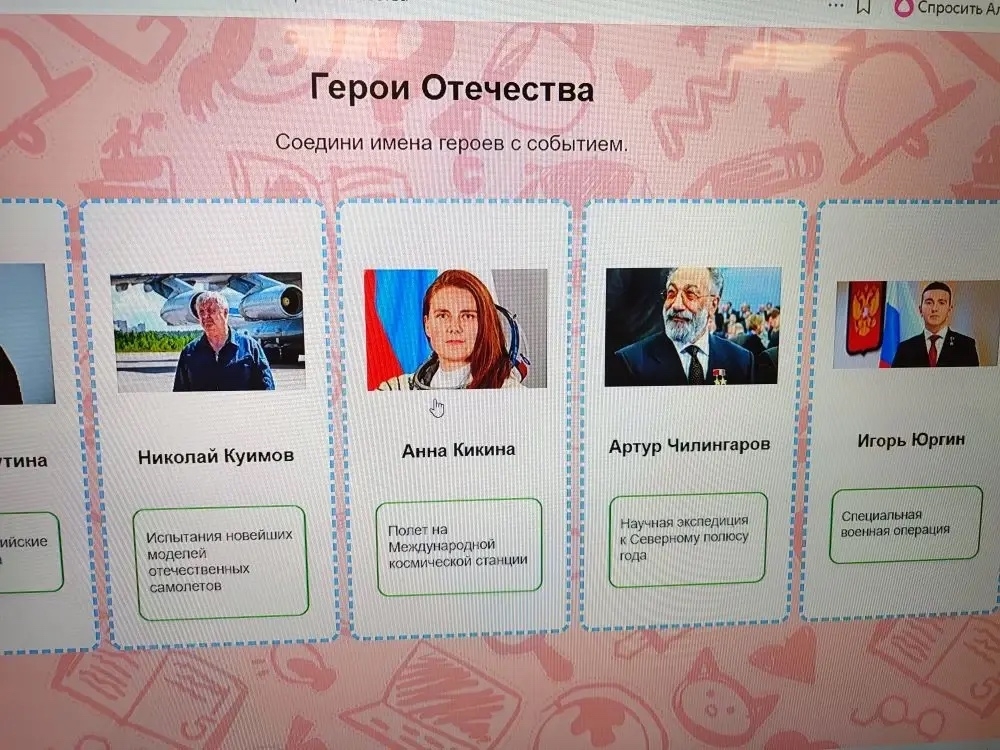 с мечтами, страхами, сомнениями и верой. На занятии 5 - К класс говорили о достижениях героев прошлого и настоящего, о родителях, которые сейчас находятся на СВО. Провели интерактивное задание.Любовь к Родине, патриотизм невозможны без сохранения памяти и традиций.