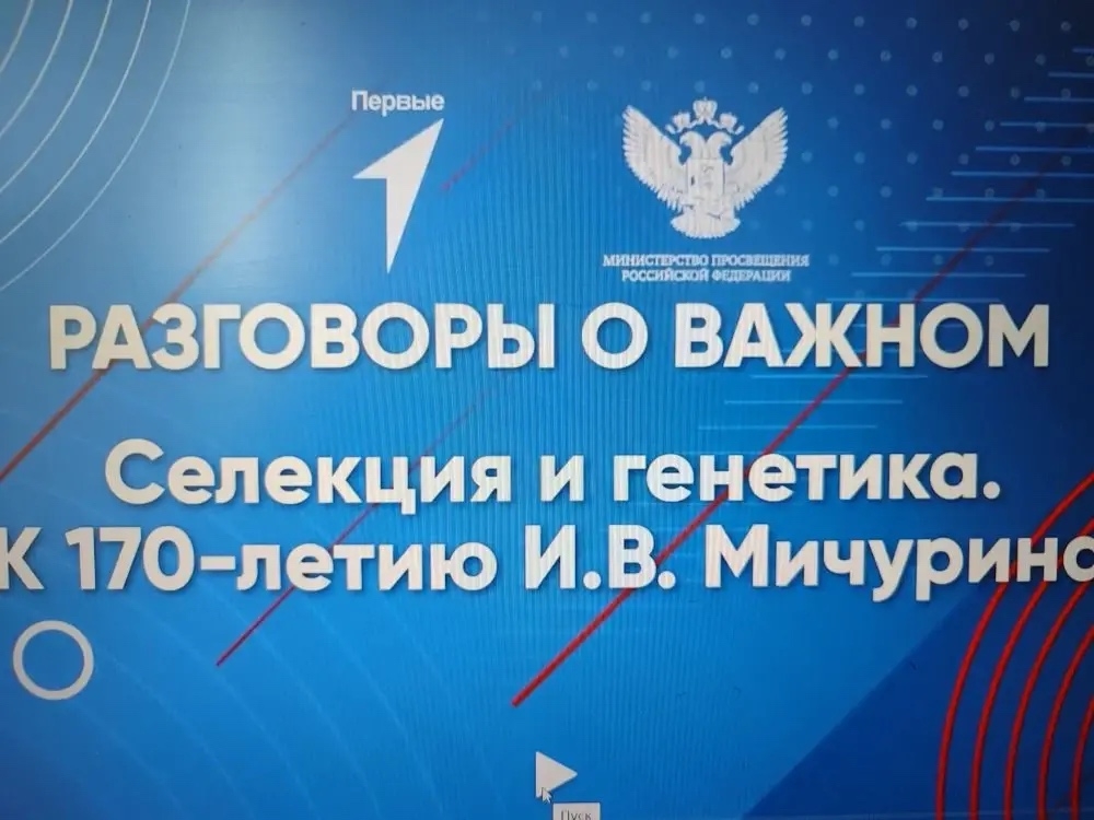 Занятие из внеурочного цикла "Разговоры о важном" было посвящено теме: " Селекция и генетика. К 170-летию И.В. Мичурина".