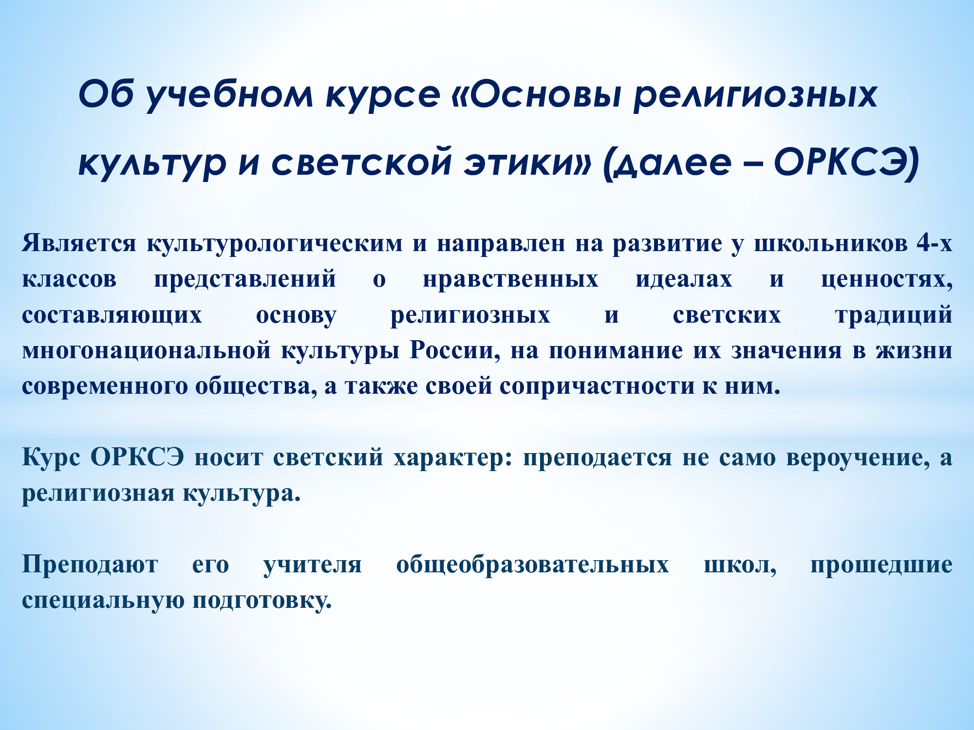 В ходе собрания заместитель директора по УВР Татьяна Александровна Ардашева, познакомила родителей третьеклассников с нормативно-правовым регулированием курса, включающего шесть учебных модулей по выбору. Учителя, преподающие ОРКСЭ, познакомили присутствующих с содержанием с своих модулей