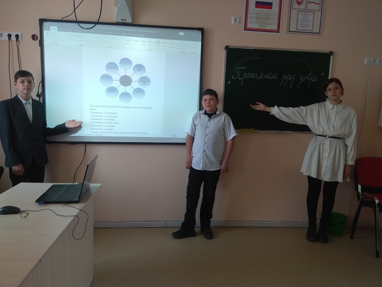 · Акции. Ученики 8-А класса вместе с классным руководителем Науменко Еленой Александровной и завучем школы Овчинниковой Татьяной Сергеевной, приняли участие в акции «Дресс код на один день» в знак поддержки детей с ОВЗ.