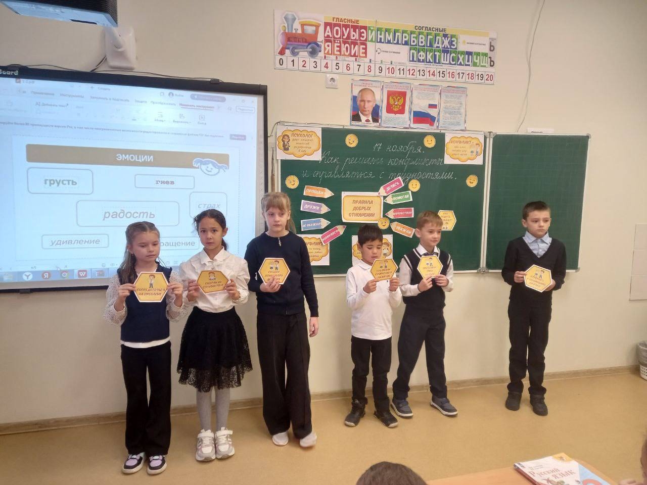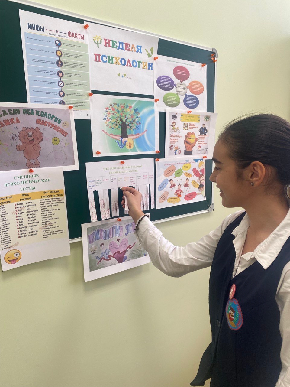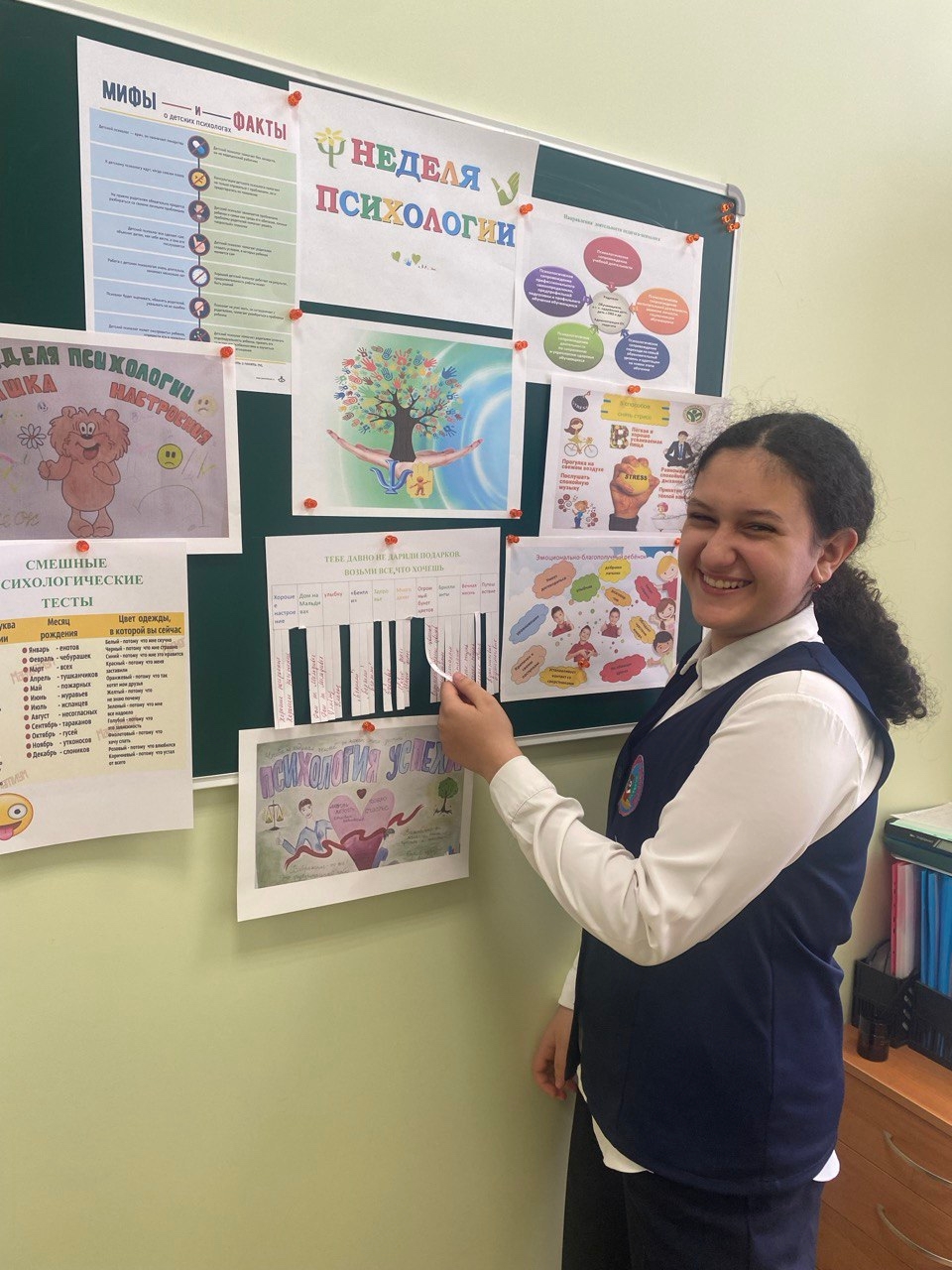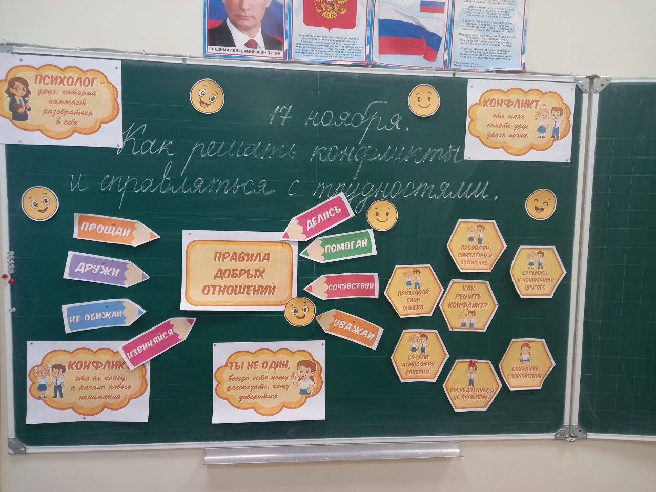 Началась «Неделя психологии» с «Разговоров о важном». На классном часе учащиеся вместе с учителями разбирали конфликтные ситуации, вместе старались найти правильную стратегию выхода из конфликта. Затем, в остальные дни, были проведены игровые и тренинговые занятия с учащимися 1-11 классов, направленные на развитие умений и навыков справляться с жизненными ситуациями, переживанием интенсивных эмоций, на развитие и совершенствование навыков общения, формирование благоприятного социально-психологического климата образовательной организации, развитие психологической безопасности в социальном взаимодействии. На оформленном к «Неделе психологии» стенде желающие могли пройти шуточный тест по психологии и получить символический подарок.