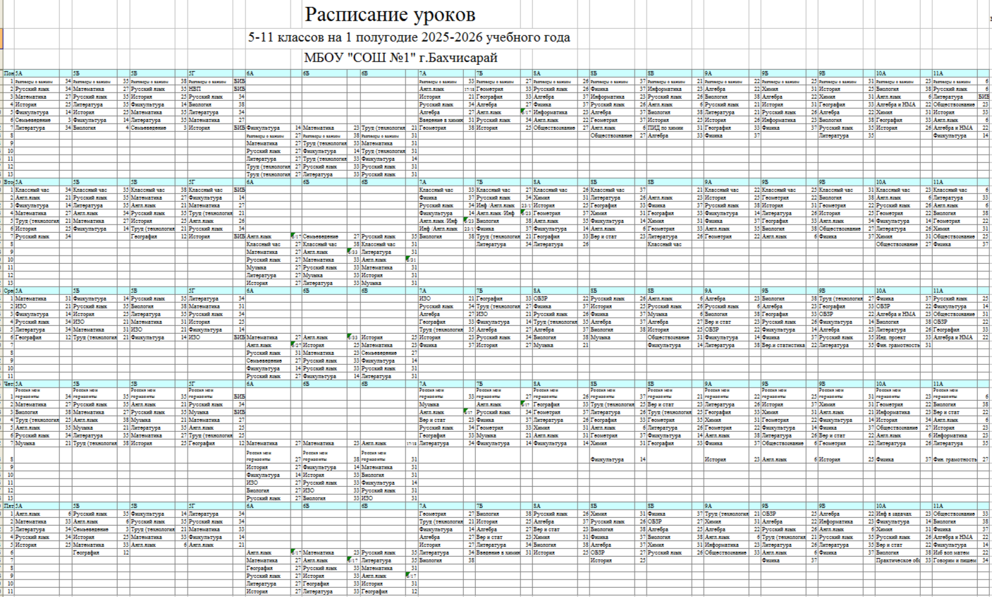 расписание уроков 5-11 класс