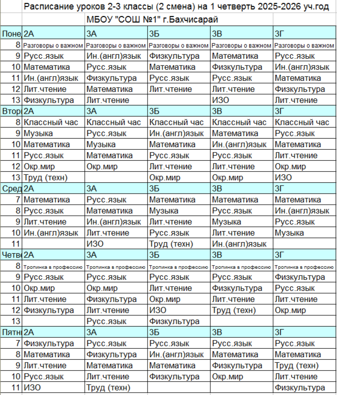 Расписание уроков 1-4 класс